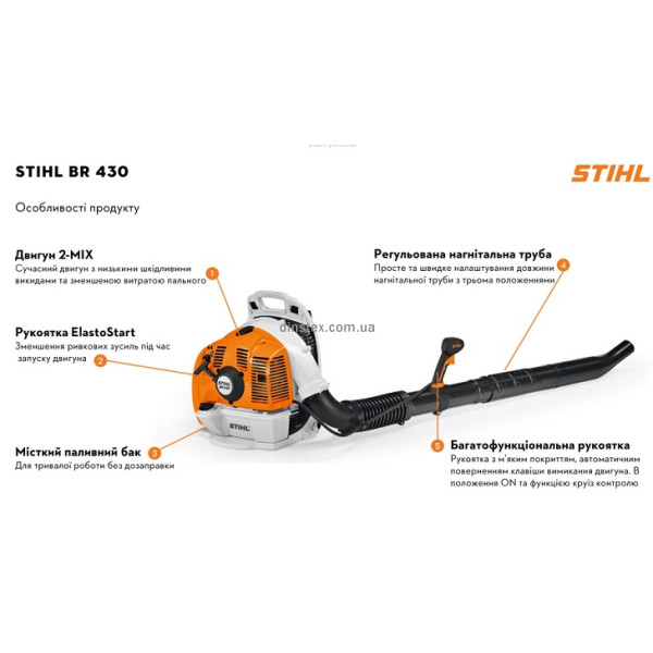 STIHL BR 430 (42440111620) – профессиональная ранцевая бензиновая воздуходувка, предназначенная для интенсивной уборки больших территорий. Она легко справляется с сухими и влажными листьями, пылью, мелким мусором и травяными остатками, обеспечивая высокую производительность и комфорт во время работы.