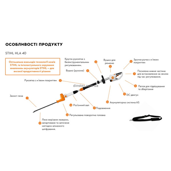 Кущоріз Stihl HLA 40 (HA10-011-2904) - подовжені акумуляторні ножиці для живоплоту в системі STIHL AS.