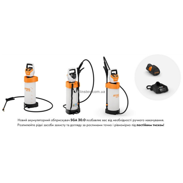 STIHL SGA 30.0 (SA090117014) – це акумуляторний обприскувач, призначений для приватних користувачів, які доглядають за невеликими та середніми садами.